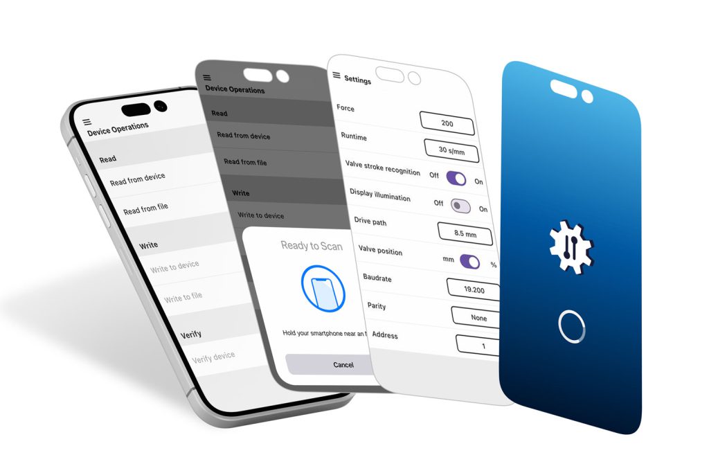 Die intelligente Steuerung des OEM Motoric Valve Drive 6 über die Motoric Drive App durch kurzes Auflegen des Smartphones auf den motorischen Stellantrieb eröffnet zahlreiche Möglichkeiten.